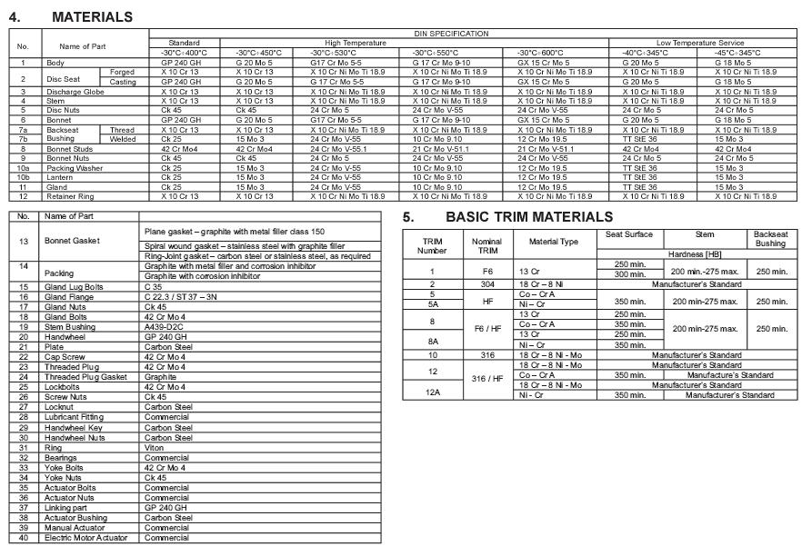 Din Globe Valve Specification